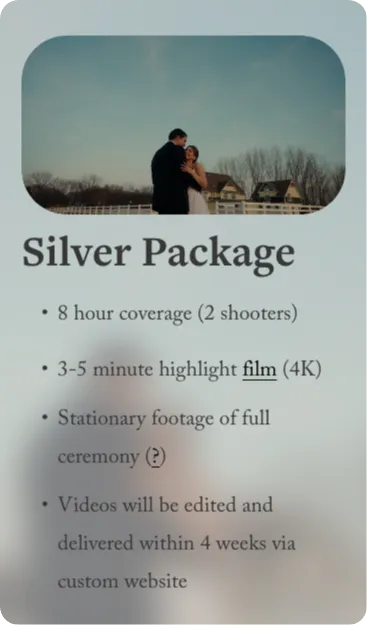Kate has been producing wedding videography for over a year now. After planning our wedding, she became obsessed with the wedding industry. She loves to capture candid, emotional moments with your favorite people.